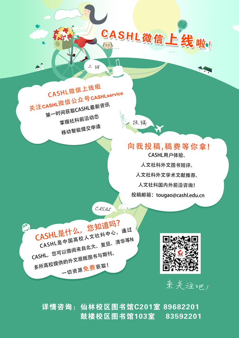 还可以“向我投稿”:CASHL用户体验、人文社科外文图书短评、人文社科学术文献推荐稿费等你拿! 投稿邮箱:tougao@cashl.edu.cnCASHL是什么,您知道吗?