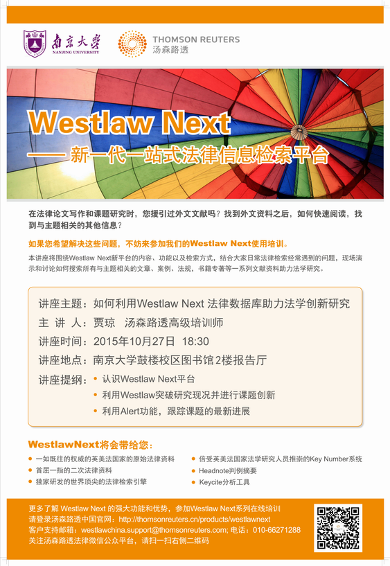 10月27日读书节系列讲座——如何使用Westlaw Next数据库