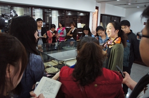 4月21日下午,图书馆在世界读书日前夕组织的“岁月书香 风雅仙林”系列活动的首场——江苏主流媒体记者集体参访活动举行,来自江苏卫视、江苏电视台教育频道、新华日报、扬子晚报、现代快报、金陵晚报、南京晨报、南京日报、江南时报、东方卫报、中新网、大苏网、南京电视台等十余家主流媒体记者集体走进南京大学杜厦图书馆,参观古籍和特藏文献主题览。