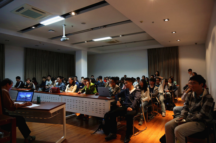 蜜蜂王分享南大校园风光建筑摄影的心得 美丽的校园风光、建筑是王耀南(蜜蜂王)摄影创作取之不尽的源泉,4.26在杜厦图 书馆,王老师从天时地利人和三个方面与80余位同学分享了南大校园风光建筑摄影的心得 。王老师对摄影孜孜不倦的探索与追求精神以及言谈之中流露出对我校的热爱之情深深地 感染了在座的每一个人。