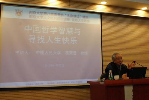 11月22日晚7点,中国人民大学葛荣晋教授在我校人文社会科学高级研究院报告厅做以“中国哲学智慧与寻找人生快乐”为题的精彩讲座。该讲座是南京大学第八届读书节名家讲座,南京大学人文社科前沿讲座、普隐人文讲座的系列讲座内容,由南京大学图书馆馆长洪修平教授主持。