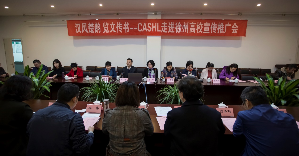 2019年11月8日,由南京大学图书馆主办,江苏师范大学图书馆承办的“汉风楚韵 览文传书——CASHL走进徐州高校宣传推广会议” 在江苏师范大学图书馆召开。来自北京大学、南京大学、江苏师范大学、中国矿业大学、徐州工程学院、江苏建筑职业技术学院、徐州工业职业技术学院、江苏安全技术职业学院、徐州幼师高等专科学校、九州职业技术学院、宿迁学院和江苏海洋大学等12所高校图书馆的30多位同仁参加会议。会议由江苏师范大学图书馆副馆长曹志梅主持。