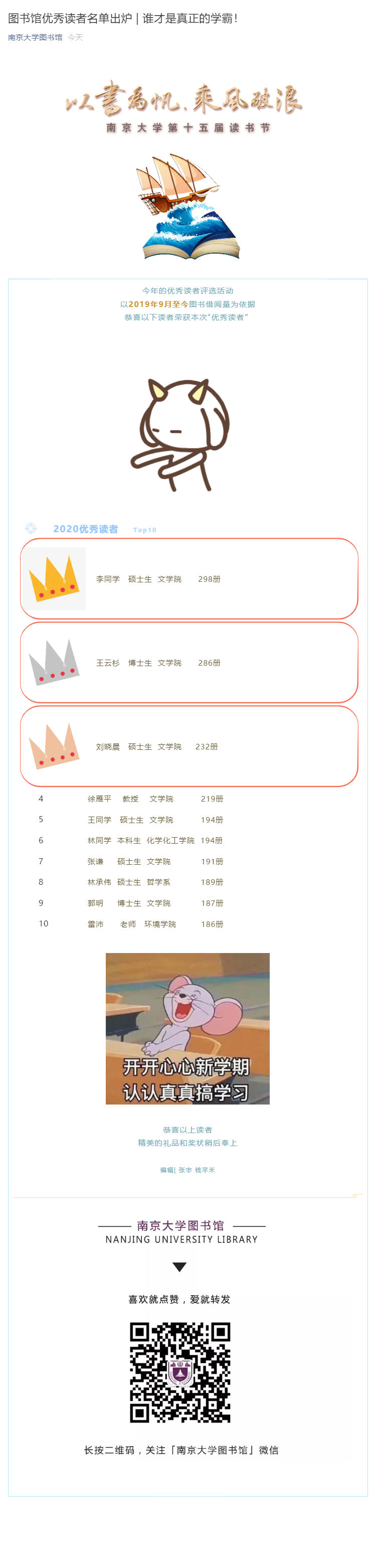 【图书馆新鲜事】图书馆优秀读者名单出炉
