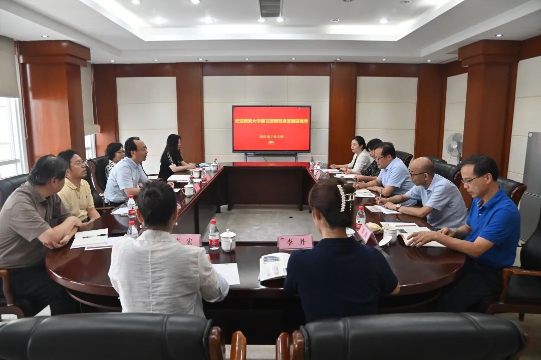 为积极落实学校文科大会精神,进一步深化馆际交流合作,交流读者服务、古籍保护等建设经验,为南京大学文科事业发展提供高水平文献资源服务,7月27日下午,黄贤金馆长一行7人赴南京图书馆开展调研交流。南京图书馆党委书记韩显红会见了调研组一行,南京图书馆馆长陈军全程参加了调研活动。