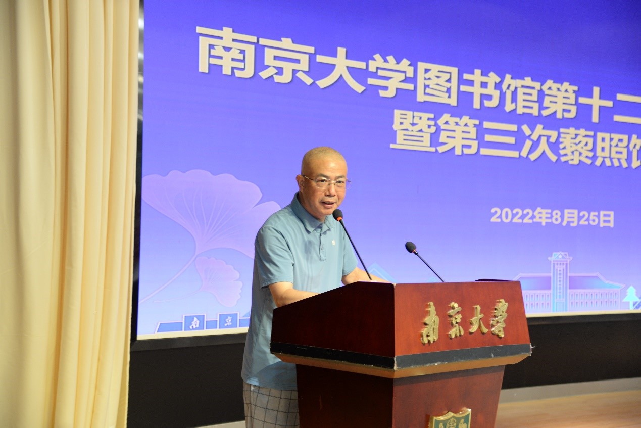 2022年8月25日,南京大学图书馆第十二届服务创新论坛暨第三次藜照馆坛在仙林杜厦图书馆报告厅召开。学校党委薛海林副书记,及大众书局繆炳文总经理、校友会张锁庚秘书长、人力资源处孙涛副处长出席论坛。南京大学图书馆黄贤金馆长主持开幕式及特邀报告。