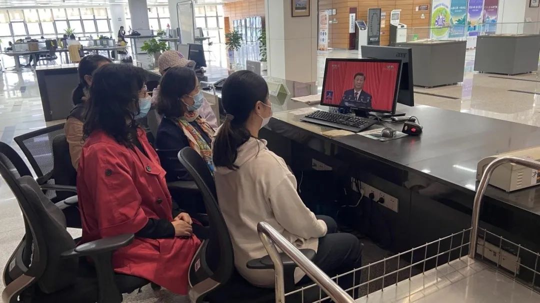 图书馆积极组织党员群众收看二十大,尤其是正在上班的馆员,在岗位上一起观看,喜迎中国共产党第二十次全国代表大会胜利召开!
