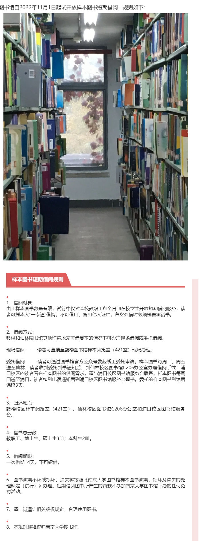 【通知】南京大学图书馆样本图书试行短期借阅