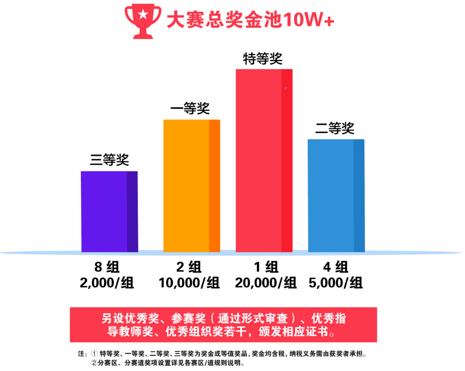 江苏分赛区的参赛团队,可同时参加全国和本省分赛区的奖项评选(所属赛区以报名时队长所在高校归属为准),江苏分赛区设置一、二、三等奖,提供获奖证书和奖金。