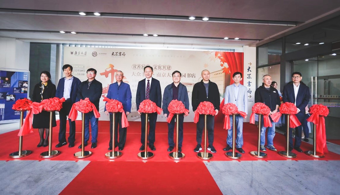 2022年11月10日,大众书局·南京大学校园书店在仙林校区一楼举行盛大开业典礼。南京大学邹亚军副校长、中科院院士、化学化工学院郭子建教授、中国作协副主席、江苏省作协主席、文学院毕飞宇教授、江苏省作家协会叶兆言副主席、南京大学古典文献研究所所长、图书馆原馆长程章灿教授、大众书局缪炳文总经理等出席活动。南京大学图书馆馆长黄贤金主持开业典礼。