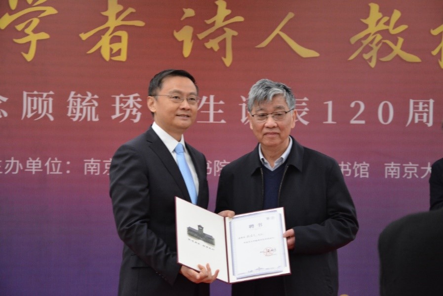 为进一步推进书院文化建设,引导新生更好地继承和发扬顾毓琇先生的精神和品格,内化于心,外化于行,南京大学毓琇书院聘请顾毓琇先生嫡孙、北京市特聘专家、江苏省政协特邀代表人士顾宜凡先生为特别顾问。中国科学院院士、毓琇书院院长祝世宁为顾宜凡先生颁发“南京大学毓琇书院特聘顾问”证书。