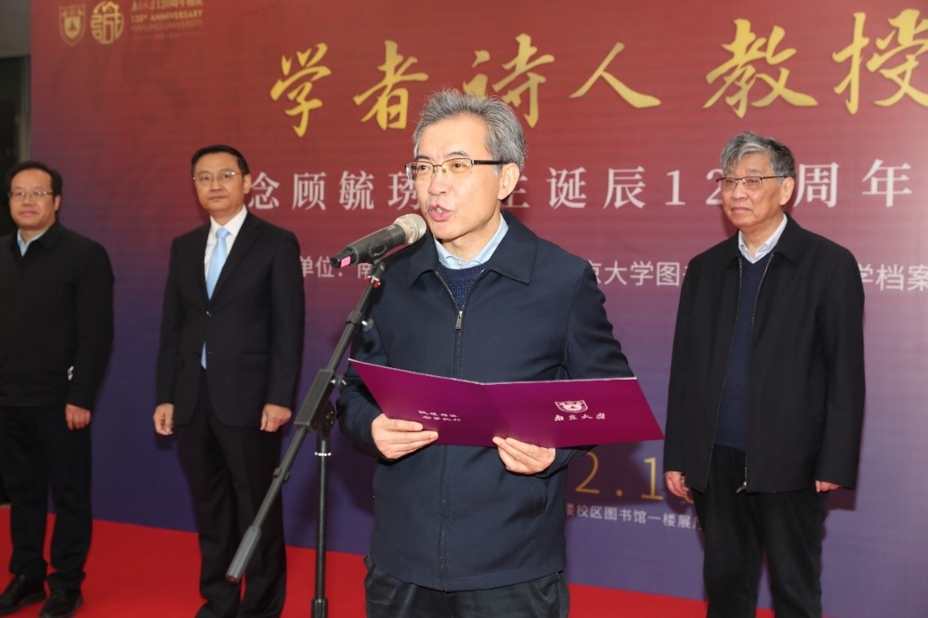 2022年12月10日上午10时,由南京大学毓琇书院、南京大学图书馆、南京大学档案馆等单位联合举办的“学者诗人教授——纪念顾毓琇先生诞辰120周年展览”开幕式在鼓楼校区图书馆一楼大厅举行。出席本次活动的领导和嘉宾有:南京大学党委常委、常务副校长谈哲敏,中国科学院院士、毓琇书院院长祝世宁,顾毓琇先生嫡孙、北京市特聘专家、江苏省政协特邀代表人士顾宜凡,南京大学图书馆馆长黄贤金,南京大学档案馆馆长吴玫,南京大学环境学院教授吴兵,南京大学团委副书记、新生学院党委副书记陈浩,新生学院党委副书记、副院长施佳欢。毓琇书院全体教师和部分学生代表参加了此次活动。开幕式由新生学院党委书记蒋恩铭主持。