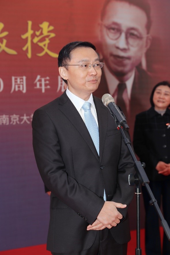 顾宜凡先生代表亲属致辞,对南京大学在其祖父诞辰120周年举办纪念活动表示真诚的感谢,表示祖父与南京大学之间如此深厚的联结令人感慨万千。他回忆起自己与祖父共度的时光,着重提到一生节俭的祖父为南大捐赠5000美元作为奖学金。顾毓琇先生曾在南京大学任教,一直非常关心南京大学的发展;而南京大学也是中国第一所为顾毓琇先生设立铜像的高校。顾毓琇先生留下了心怀祖国的赤子情怀、孜孜以求的学术境界、投身时代的奉献精神等宝贵财富,祝愿南京大学在顾毓琇先生精神的指引下走向更大、更好的辉煌。
