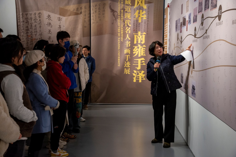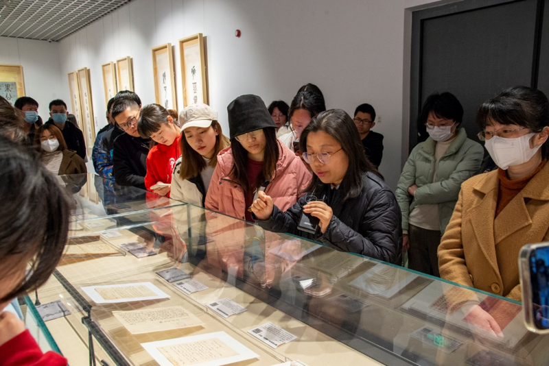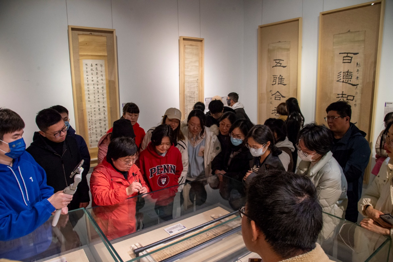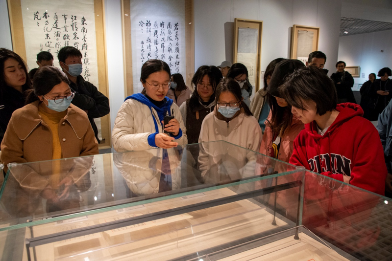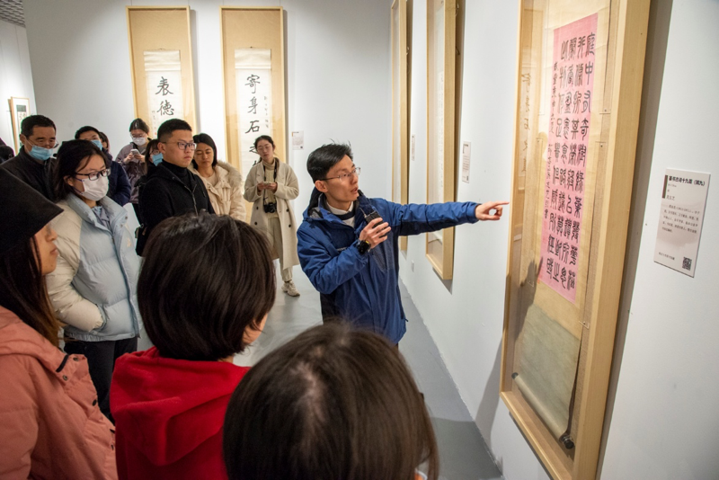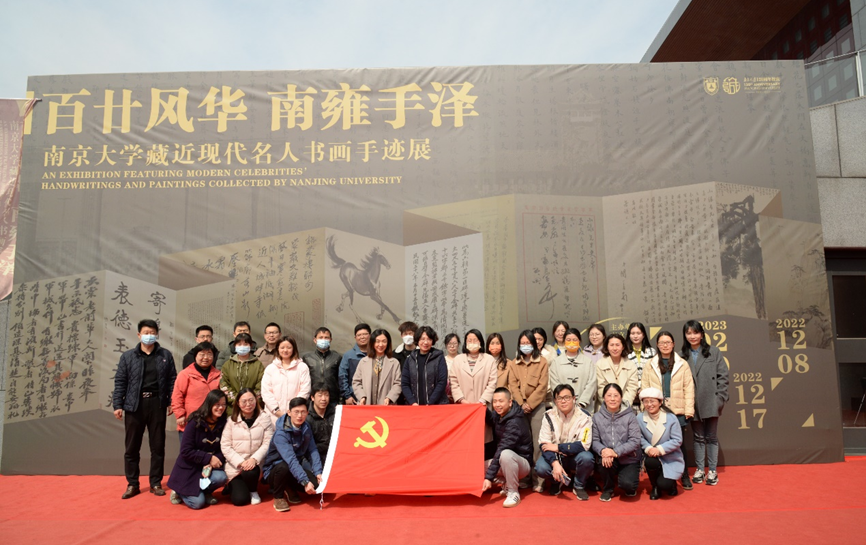 2023年3月3日,图书馆党总支组织开展主题党日活动,参加“跟着教授看展览:群星闪耀,手泽流芳 —— 与先贤的一场对话”活动。通过策展团队的接力导览,从不同维度解读南京大学藏近现代名人书画手迹展,深度还原展品背后的故事,与先贤们完成一场跨越时空的对话。活动由本次展览总策展人史梅馆长主持。