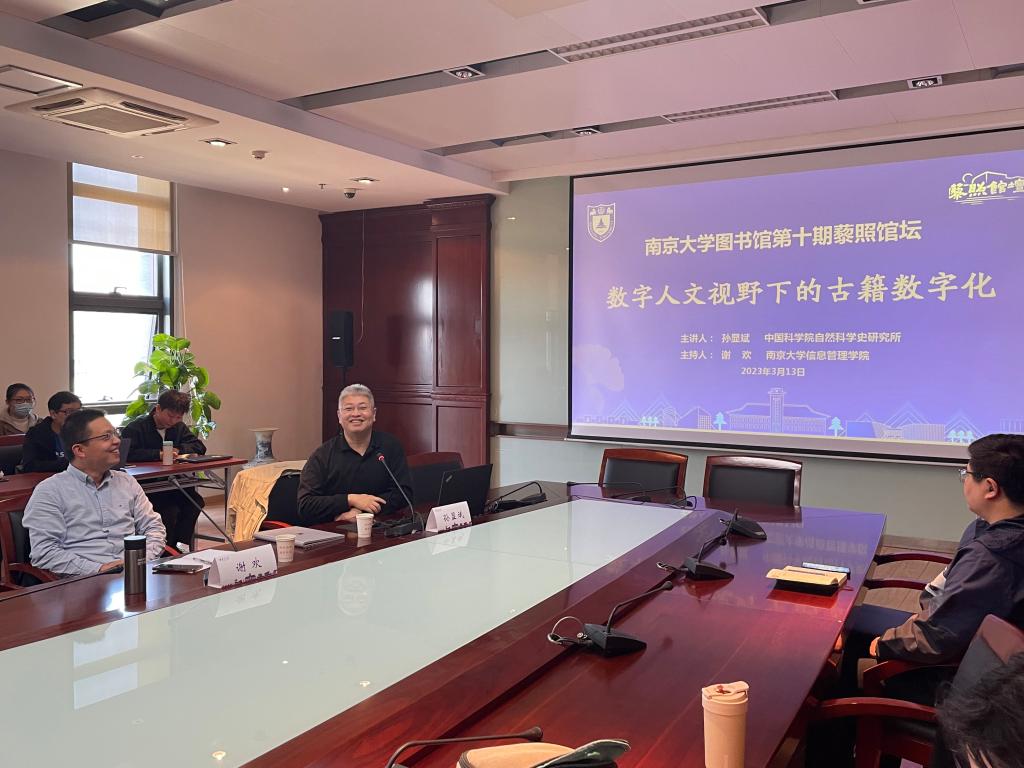 3月13日下午,中国科学院自然科学史研究所研究员孙显斌博士在仙林校区杜厦图书馆为南大师生开展讲座,题为《数字人文视野下的古籍数字化》。信息管理学院图书馆与数字人文系主任谢欢副教授主持讲座,图书馆史梅副馆长、部分馆员、南大相关专业同学参加了讲座。