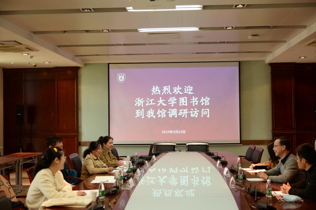 3月16日浙江大学图书馆副馆长余敏杰一行4人来南京大学图书馆调研交流。南京大学图书馆副馆长邵波、资源建设部副主任张燕峰、荣方超等参加。