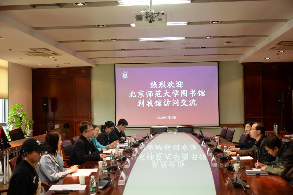 2023年4月24日,北京师范大学图书馆副馆长李书宁一行6人来南京大学图书馆调研交流。南京大学图书馆副馆长邵波、古籍特藏部主任李丹、系统保障部主任沈奎林参加。