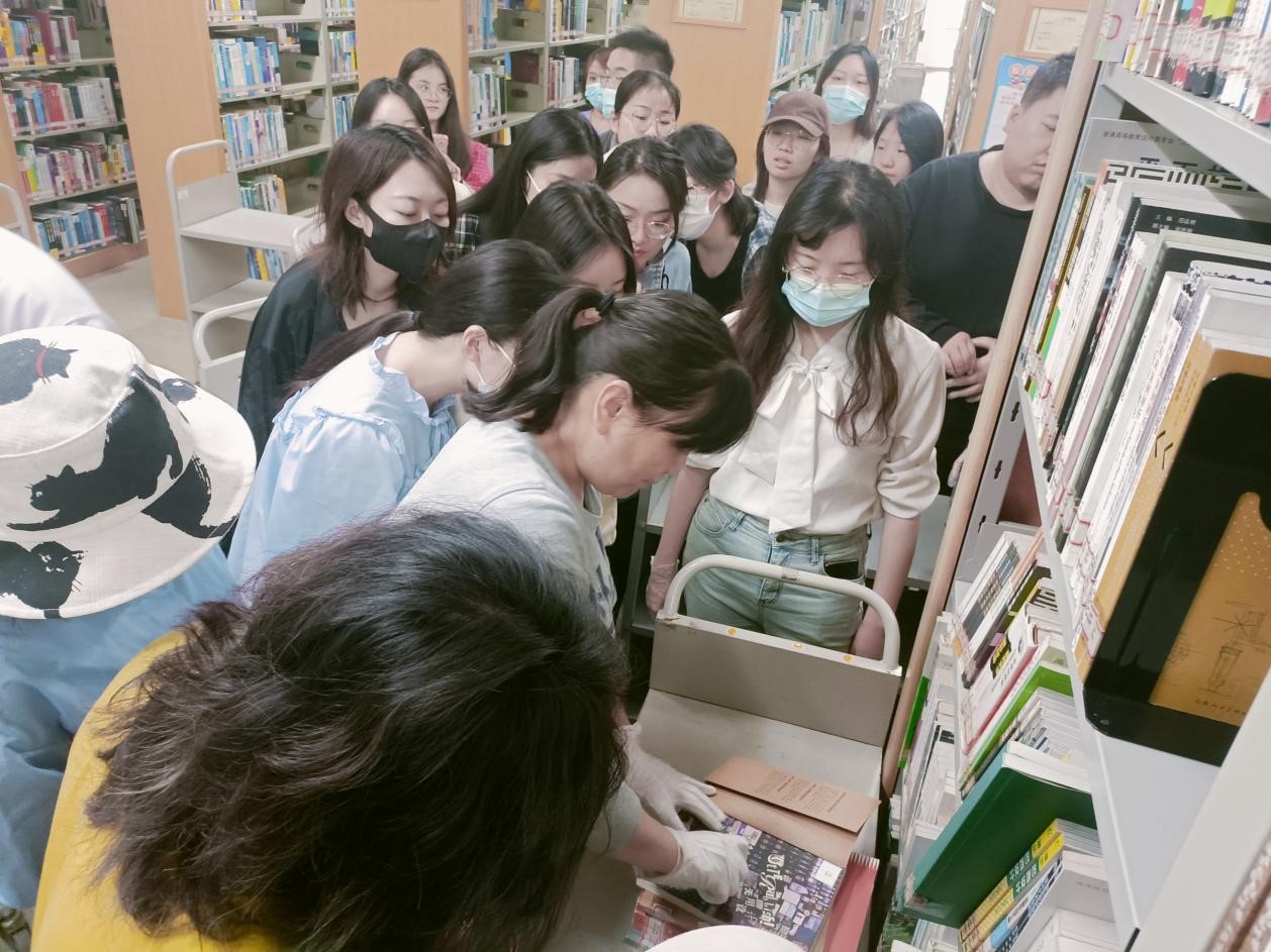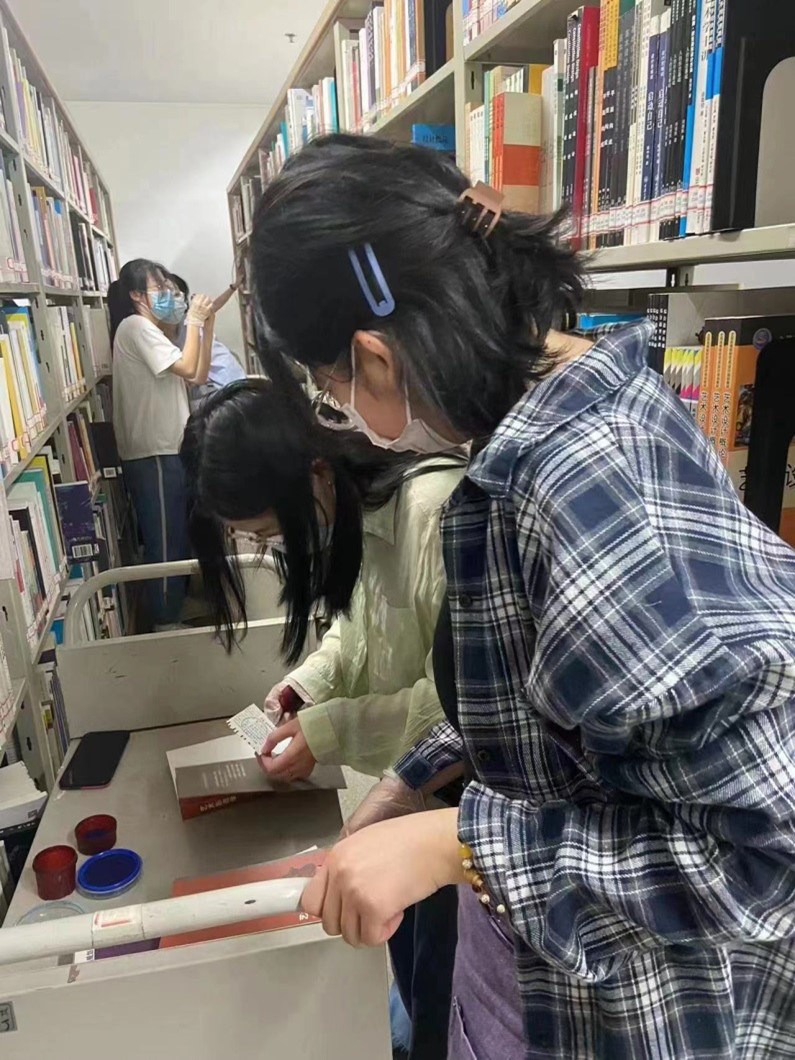 馆员们向参与活动的志愿者详细介绍了工作情况和要求后,便带领志愿者们2人一组开始了有条不紊的书籍签章加盖工作。加盖签章工作看似轻松,实则需要细心、耐心和小心。初次参与整理、加盖签章工作,志愿者们难免会或多或少遇到问题,而图书馆馆员们都为大家进行了详细解答。在馆员们的加油、鼓励、帮助之下,志愿者们以饱满的工作热情出色的完成了既定的图书整理工作!经图书馆工作人员后期统计反馈,本次为期2天的志愿服务活动共完成1.5万册图书的签章工作,大大缓解了老师们的工作压力。