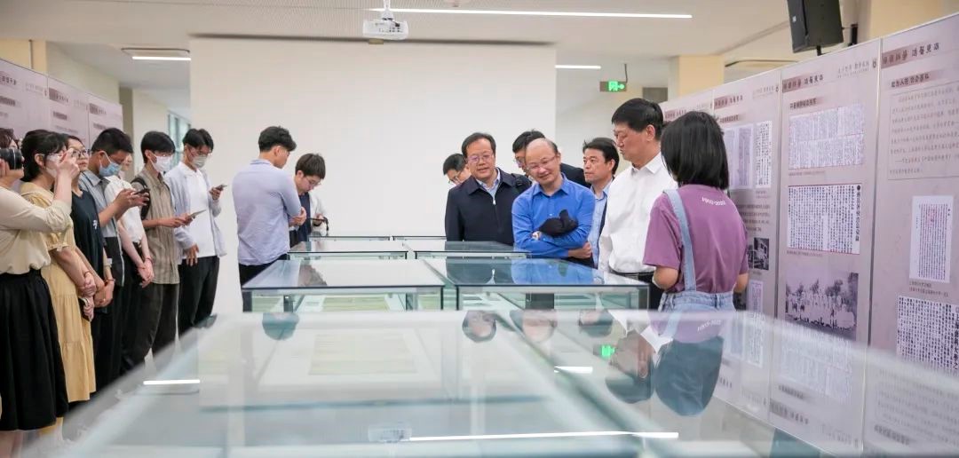 开幕式后,与会人员共同参观了本次展览。胡金波勉励同学们,秉文书院一年的学习,将为大家打下坚实的基础和底色。郭秉文先生讲四个平衡,同学们要以人民为重,以国家安全为大,在巩固和发展中国特色社会主义建设的事业中发挥自己的力量。