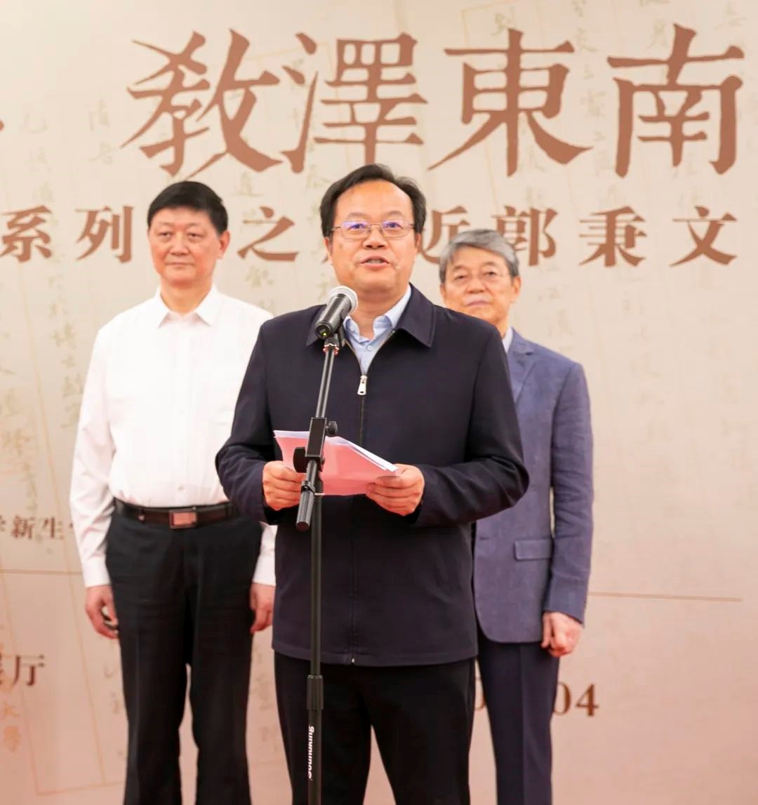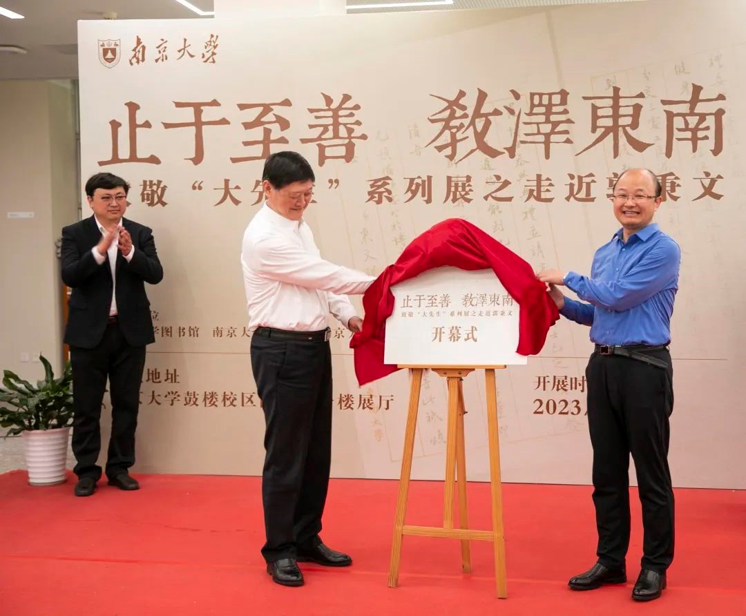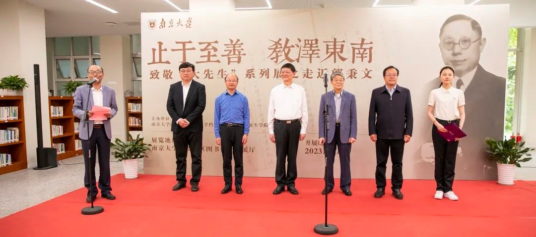 2023年5月18日上午,“止于至善,教泽东南”——致敬“大先生”系列展之走近郭秉文在南京大学鼓楼校区图书馆正式开幕。国家总督学顾问、江苏省政协原副主席、南京大学原党委书记胡金波,南京大学人文社会科学资深教授、秉文书院院长周宪,南京大学新生学院党委书记、常务副院长蒋恩铭,南京大学图书馆馆长黄贤金,南京大学团委副书记王譞出席开幕式。开幕式由南京大学图书馆副馆长罗钧主持。