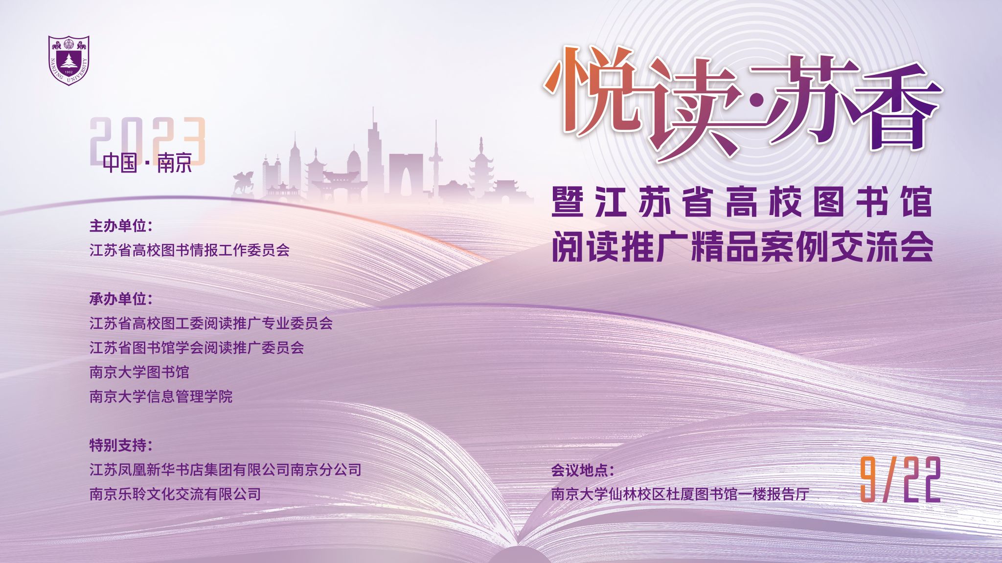 2023年9月22日,“悦读·苏香”暨江苏省高校图书馆阅读推广精品案例交流会在南京大学仙林校区召开。南京大学党委常委、副校长王振林,江苏省教育厅一级调研员蔡华,江苏省人大科教文卫委员会委员邵进,南京图书馆党委书记戴洪宇等出席会议。来自全省高校150多位图书馆馆长、馆员代表出席了本次会议。活动由南京大学图书馆馆长黄贤金主持。
