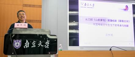 10月23日,南京大学第十八届读书节正式开幕。当晚,南大文学院教授苗怀明老师受邀在鼓楼校区图书馆为师生带来了一场精彩的讲座,题目为“从刀郎《山歌寥哉》到蒲松龄《聊斋志异》——中国传统文化在当代的传承与创新”。讲座由图书馆馆长黄贤金教授主持。