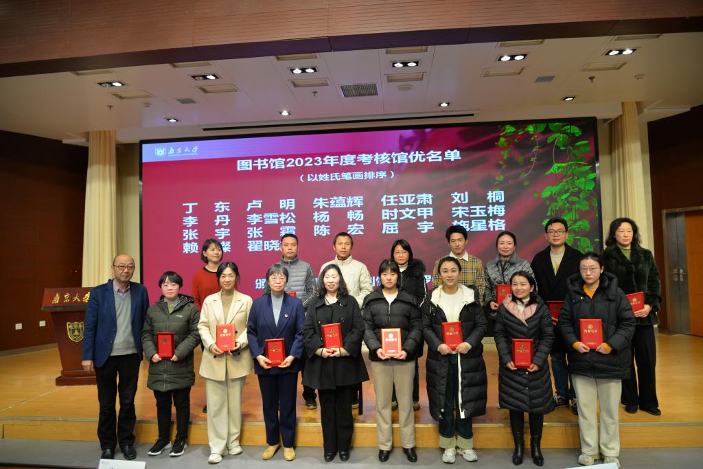 2024年1月19日南京大学图书馆“年度总结及表彰大会”在仙林校区图书馆一楼报告厅举行。图书馆馆长黄贤金、副馆长邵波出席此次大会。图书馆党总支副书记、副馆长罗钧主持。