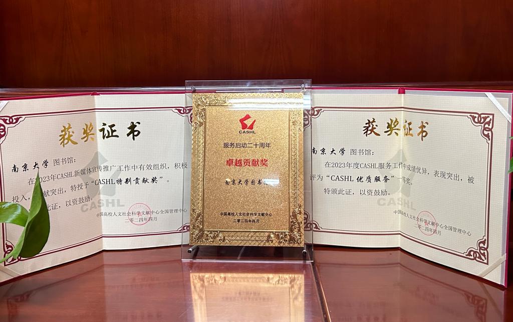 此外,由于南京大学图书馆在CASHL资源建设和服务方面表现突出,再次荣获2023年度CASHL优质服务一等奖。作为CASHL新媒体组长单位,南京大学图书馆在新媒体宣传推广工作中有效组织,积极投入,贡献突出,获得2023年度CASHL特别贡献奖。袁晓园、王佳欣两位馆员获得全国CASHL先进个人奖。南京大学图书馆作为CASHL华东北区域中心,不仅积极履行中心馆职责,同时,还为全校师生教学科研的高质量发展提供优质的文献信息资源保障服务,所有文献资源的获取均由图书馆买单。2021-2023年的“CASHL使用成员馆排行榜”上,南京大学图书馆连续三年排名第一。