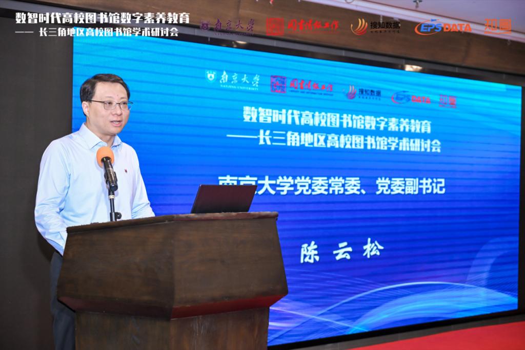 为推动长三角地区高校图书馆创新发展,响应提升数字素养教育的国家战略要求,6月20日,由长三角高校图书馆联盟指导,江浙沪皖四省市高等学校图书情报工作委员会联合主办,南京大学图书馆承办,北京搜知数据科技有限公司协办,《图书情报工作》杂志社提供媒体支持的“数智时代高校图书馆数字素养教育——长三角地区高校图书馆学术研讨会”在南京成功举办。来自全国各地的200名馆长、馆员代表出席了会议。南京大学党委副书记出席会议并致辞。