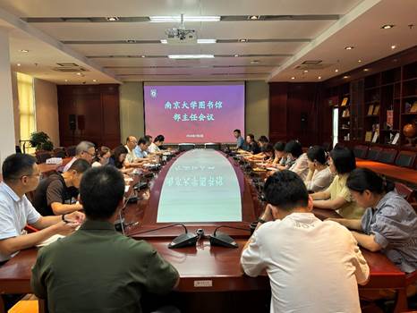 为全面落实学校2024年春季学期工作总结暨秋季学期工作研讨会会议精神,以“奋进行动”全面推进中国特色世界一流南大建设,2024年7月2日下午,南京大学图书馆在仙林校区杜厦图书馆五楼会议室召开部门主任会议,各部门逐一介绍了2024年上半年围绕“奋进行动”的工作情况,深入探讨下半年重点工作。图书馆馆长黄贤金、副馆长兼党总支书记罗钧、副馆长邵波出席会议。