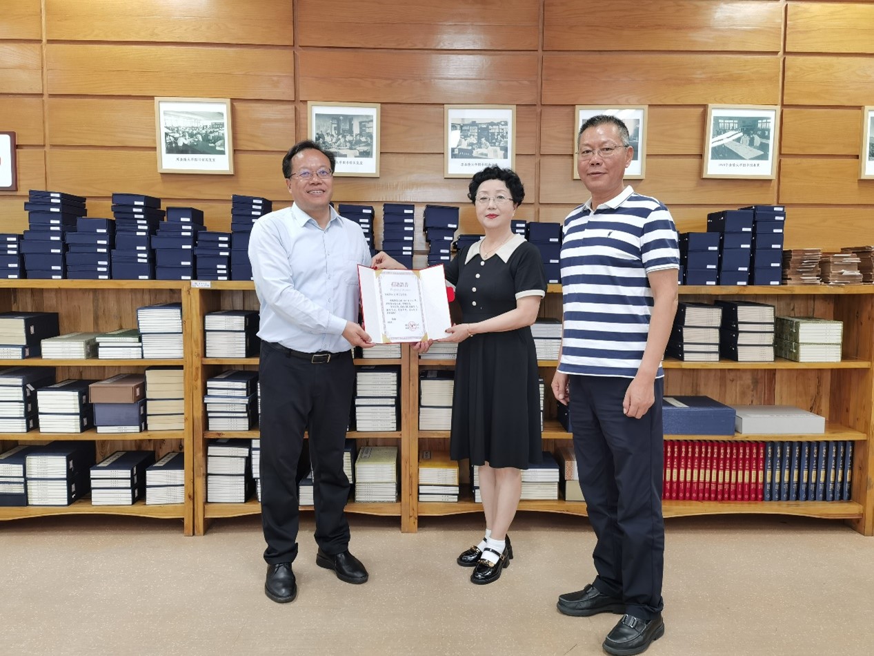 黄贤金馆长向两位捐赠者颁发捐赠证书并表示真挚谢意。