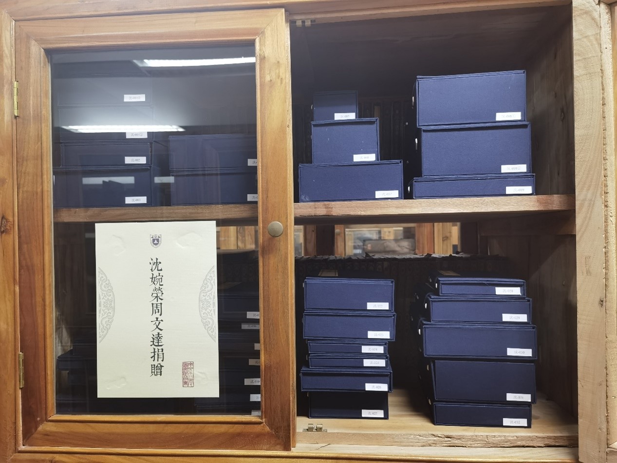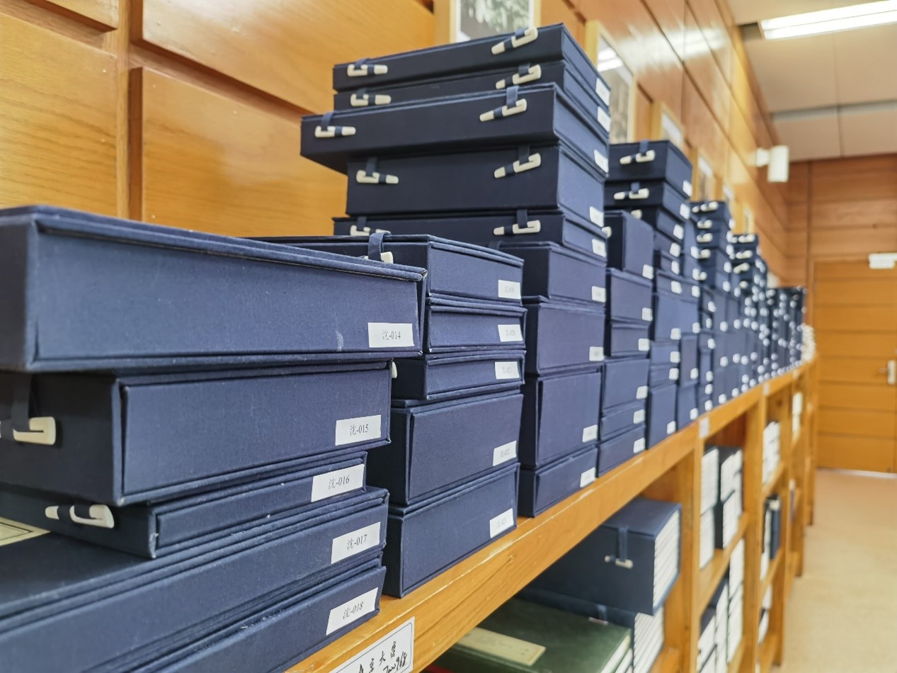 周文达介绍了自己与南大的缘分,讲述了这批文献的来历,表示向图书馆捐赠文献是对学校的一种回报,也希望这些文献得到更好的利用。周文达强调,他一直珍藏这批文献,在邹亚军副校长介绍了南京大学图书馆对于古籍保护与活化的情况后,才决定捐赠这批文献。2023年7月17日,图书馆史梅原副馆长和古籍特藏部副主任时文甲专程到家中考察文献存藏情况;10月12日,打包装箱并用专车运回仙林校区图书馆;并于当年12月完成整理、编目及修复工作,现在业已为读者所利用,尤其是还为每本书钤盖了“沈婉荣周文达伉俪捐赠图书”篆文印,安排了专柜,并为每部线装书量身定制了函套。这些珍贵文献真正回到了“家”。