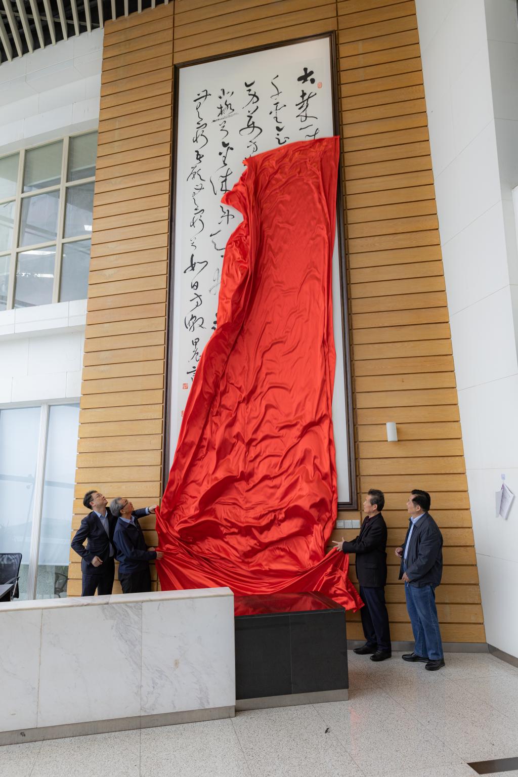 言恭达、谈哲敏、索文斌、闵铁军共同为《南京大学校歌》书法作品揭幕。