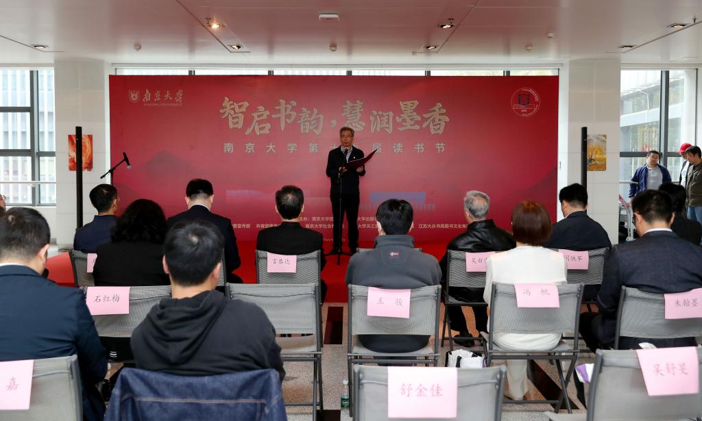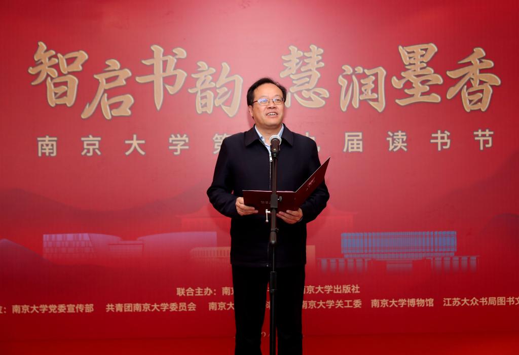 校党委宣传部部长孙乐强主持开幕仪式。江苏省委统战部、江南时报社、江苏省文史研究馆、南京金陵书苑图书发行有限公司,南京大学相关学院和职能部处负责人,以及师生代表参加活动。