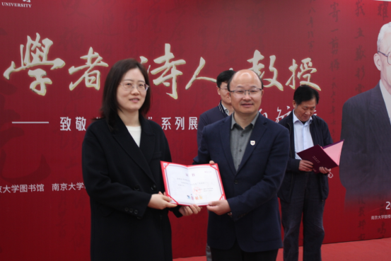 开幕式上,蒋恩铭为新生书院毓琇书院邓泽燕颁发“‘大先生展’书院阅读推广人”证书。闵铁军与蒋恩铭共同为“顾毓琇大先生展”揭牌后,由闵铁军宣布致敬“大先生”系列展之走近顾毓琇展正式开幕。