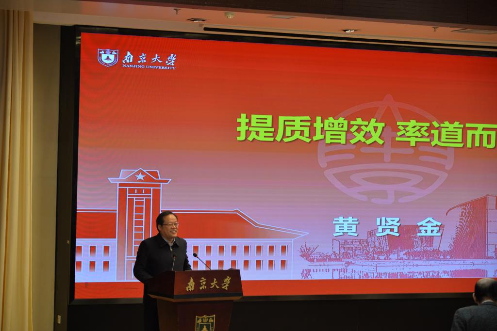 黄贤金首先结合中共南京大学第十五届委员会第十六次全委会会议精神、《南京大学“管理提质增效年”实施方案》、《南京大学“奋进行动”实施方案》,从“四全文化育人”、四校区图书馆协同、文献资源建设、国内外合作交流以及主要建设成果等方面,全面总结了2024年图书馆“提质增效”成效。结合“改革攻坚克难年”的学校党委全委会要求,针对图书馆工作要点,他表示力求实现三大突破,即:突破单一的信息素养教育模式,以立德树人为 “国之大”为目标,注重信息及人文素养并重,助力专业素养、研究素养提升,打造融入教育教学全过程、面向拔尖人才培养的四个素养提升的的高校图书馆知识服务支持体系;突破面向在校师生为重点的知识服务模式管理,以助力第一个南大建设的“校之要”为目标,打造融合奋进,体现人才培养全生命周期特征的高校图书馆创新服务支撑体系;突破“文献为王”的壮大发展路径,以服务学科、学者、学生知识服务需求的“馆之切”为目标,打造跨馆、跨校、跨省、跨国知识服务协作体系。