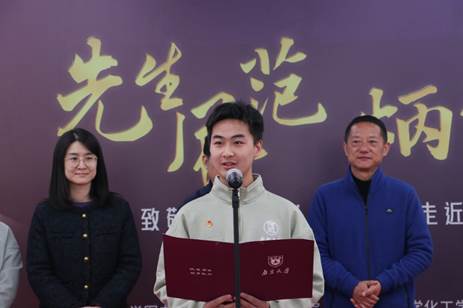 陈尚尚从自身经历出发,分享了自己从一名南大学子,成长为南大青年教师、国家配位化学重点实验室成员的心路历程,他表示自己的成长正是受到戴安邦先生精神的感染与熏陶,先生留下的精神财富,激励着南大化学一代又一代的师生披荆斩棘,前赴后继,立足于社会民生,服务于国家需求,为我们国家复兴贡献我们自己的南大力量。