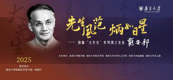 致敬“大先生”系列展是南京大学图书馆为积极推进“三全育人”在图书馆工作中的融合,借助图书馆在信息资源、人才培养、文化育人方面的优势,联合新生学院七个书院及主要院系部处举办的系列展。自2022年11月起,该系列展已圆满完成致敬顾毓琇、郭秉文、陶行知、吴有训、戴安邦、程开甲、吴健雄七位大先生的两轮展出。此次致敬“大先生”系列展之走近戴安邦由图书馆、安邦书院、化学化工学院、关工委、档案馆共同主办,旨在通过更深度展示大先生的生平及经历,引导广大师生更好地理解和传承他们的爱国精神、科学精神以及奉献精神,树立责任感、使命感,肩负时代重任,凝聚南大式奋进力量,把自身发展融入到实现民族复兴、国家富强的伟大历史进程。