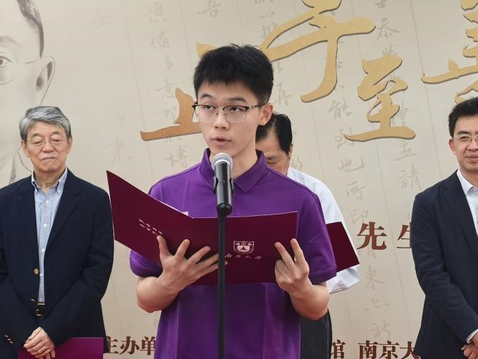戚明国同学代表秉文书院2024级同学发言。他用青春激扬的文字追忆郭秉文先生,表示当代学子应传承先生精神,接过历史的接力棒,在南大教育沃土上以先生精神铸魂,成长成才。
