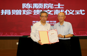 2025年5月20日下午,值此南京大学校庆佳期,陈颙院士珍贵文献捐赠仪式暨学术分享会在仙林校区杜厦图书馆一楼校友之家报告厅举行。中国科学院院士、南京大学教授陈颙先生,中国科学院院士、南京大学谈哲敏校长,南京大学索文斌副校长,校友会冯帆秘书长,地球科学与工程学院王汝成教授,地球科学与工程学院董婷书记,以及来自地球科学与工程学院、文学院、图书馆等单位的校友、老师及同学代表出席。谈哲敏与陈颙共同为捐赠文献揭幕,并向陈颙院士颁发了捐赠证书。南京大学图书馆馆长黄贤金主持了捐赠仪式。