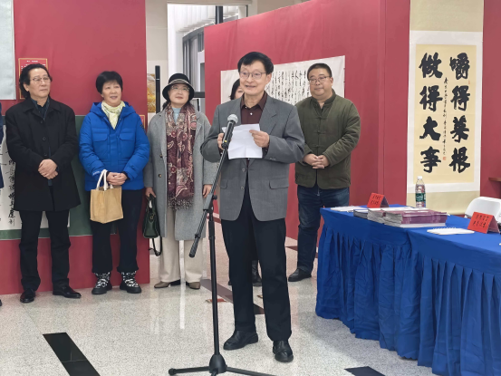 2025年12月23日上午,“南雍墨香——南京大学化学系78级校友袁志康书法展”开幕式在南京大学仙林校区图书馆二楼大厅隆重举行,南京大学原副校长,南京大学发展基金会理事长邹亚军、图书馆原副馆长史梅、南京校友会副会长刘立阳、书画学会副会长陈显华、化学化工学院原副院长李育佳、文学院教授周欣展、图书馆副馆长翟晓娟及校外特邀嘉宾出席了本次开幕式。仪式由南京大学文学院周欣展教授主持。