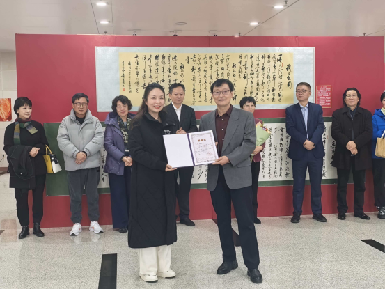 开幕式期间,袁志康先生向南京大学图书馆捐赠了15幅书法精品和40本书法图册,翟晓娟代表馆方接受了这份满载情谊的礼物,并向袁志康先生颁发了捐赠证书,以致感谢。