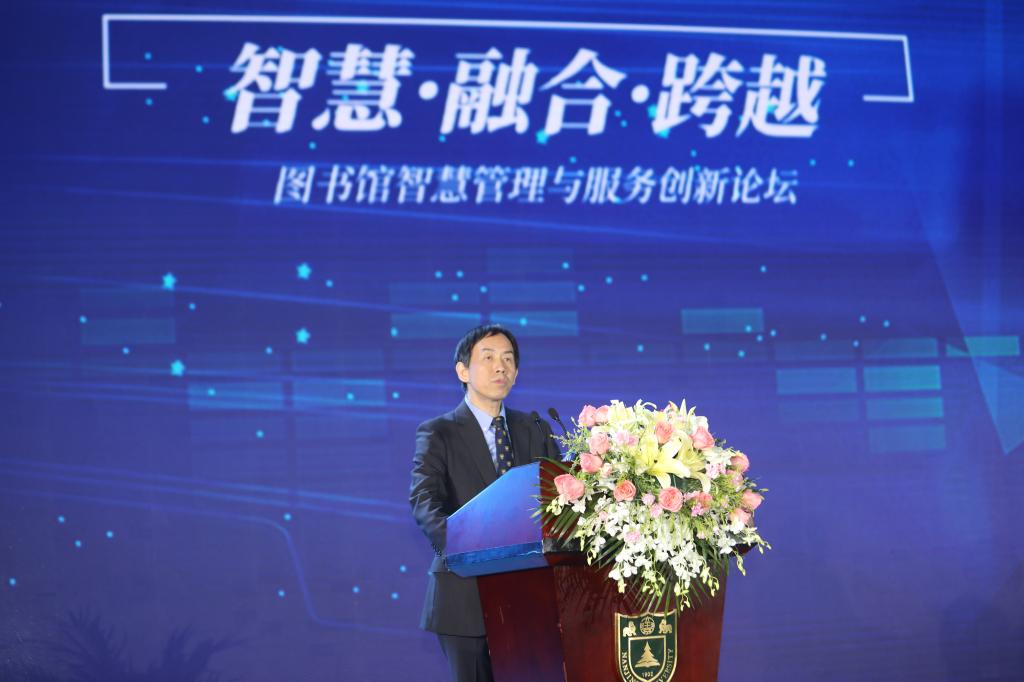 南京大学党委副书记杨忠为论坛开场致辞,他强调了现代化技术在图书馆的实践和应用,希望南京大学图书馆能与全国高校图书馆携手,开放融合、协作共进,共同融入教育信息化的进程,携手打造智慧图书馆的新时代。他表示,将继续坚定地支持图书馆的事业发展,为办好让人民满意的高等教育,为完善公共文化服务体系、推动社会主义文化繁荣兴盛,为早日实现中华民族伟大复兴的中国梦做出更大贡献。