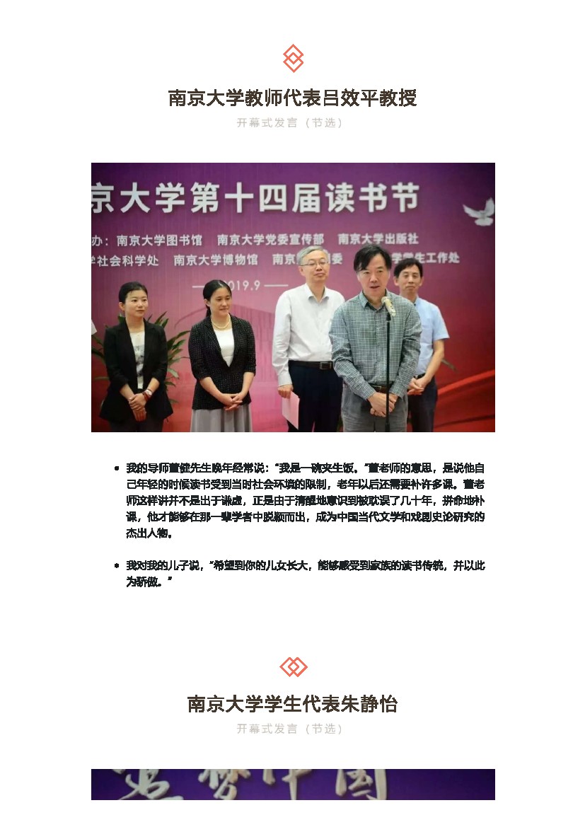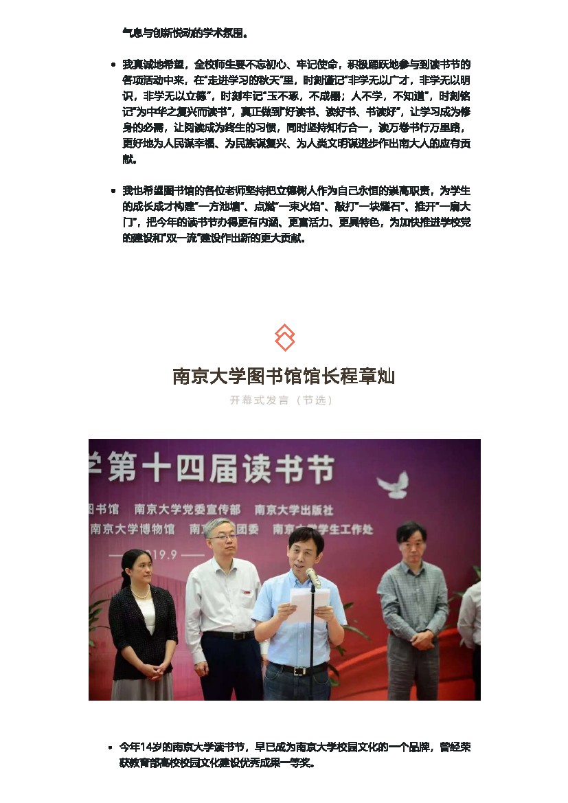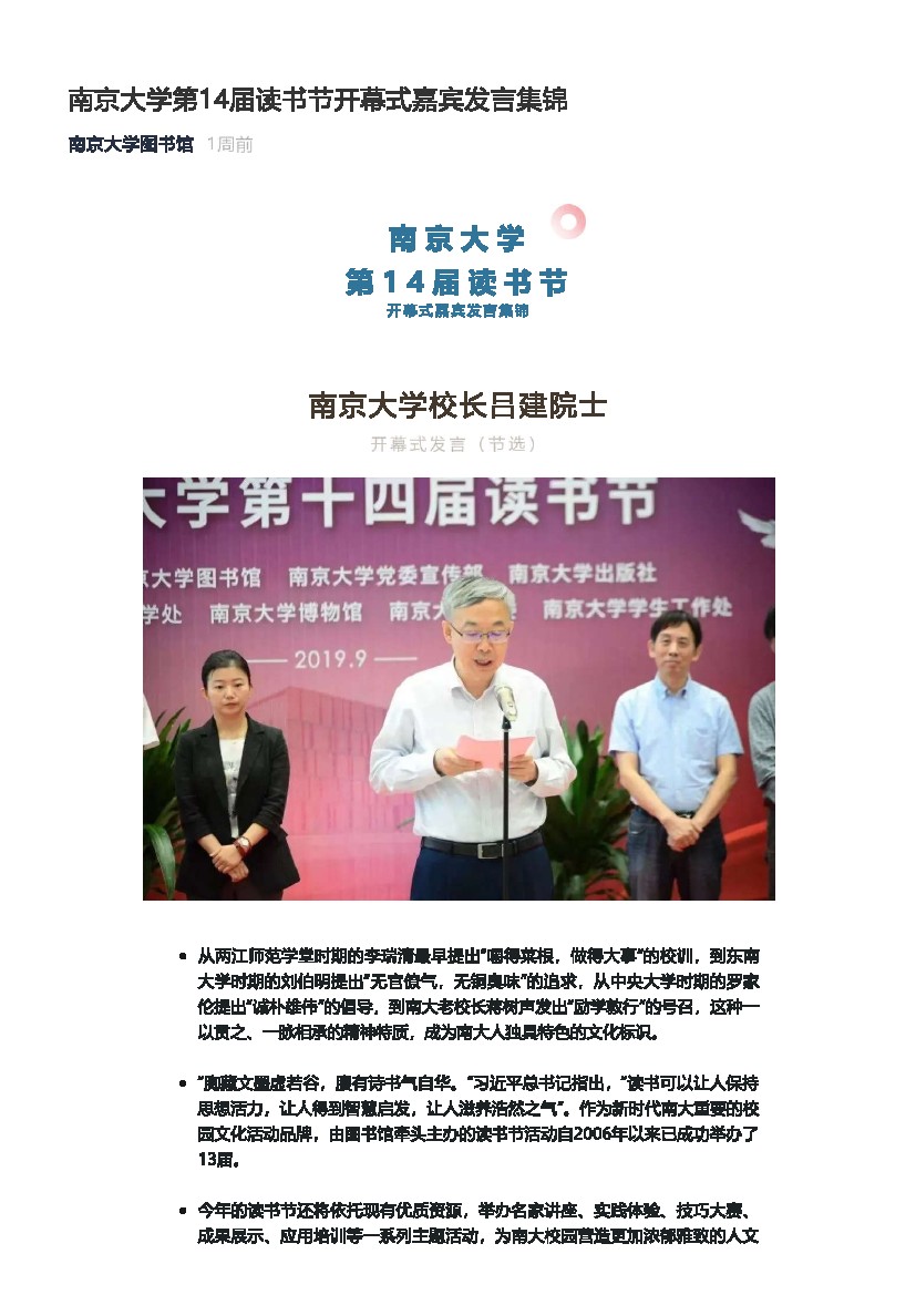 南京大学第14届读书节开幕式嘉宾发言集锦