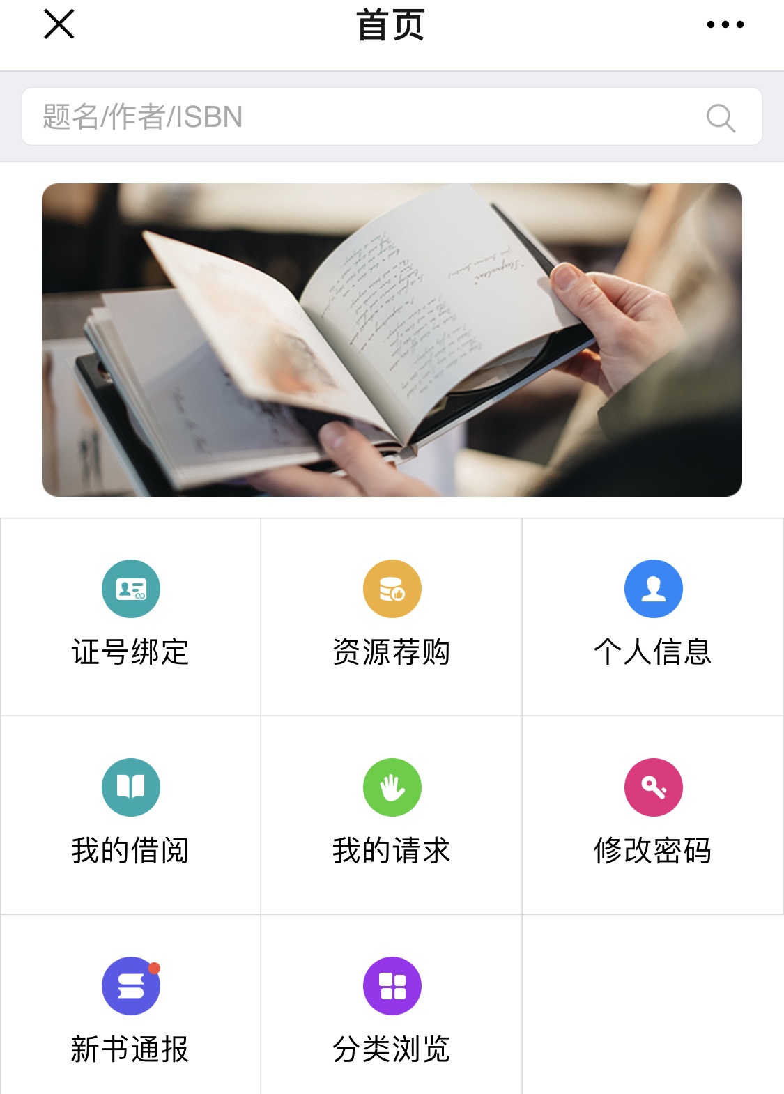 进入主界面后,点击下面的菜单“我”,进入检索、续借、浏览等。